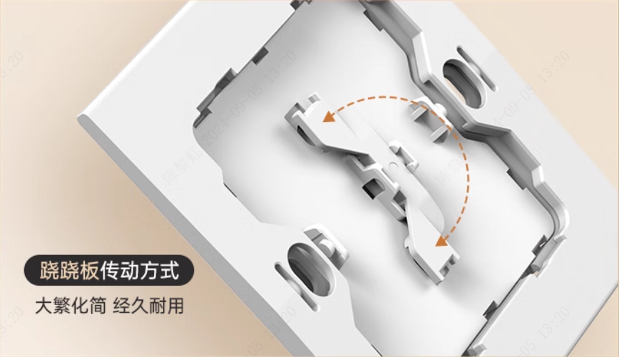 日常使用頻率很高的開關插座,細節(jié)的設計會影響使用感、體驗感,從而影響生活品質和心情。正泰X5開關創(chuàng)新傳動方式,“蹺蹺板”傳動化簡為繁,加持不到3°的小擺角設計,開合手感輕巧,聲音小而清脆。開/關只需輕輕一按,通過4萬次按壓檢測,經(jīng)久耐用。
